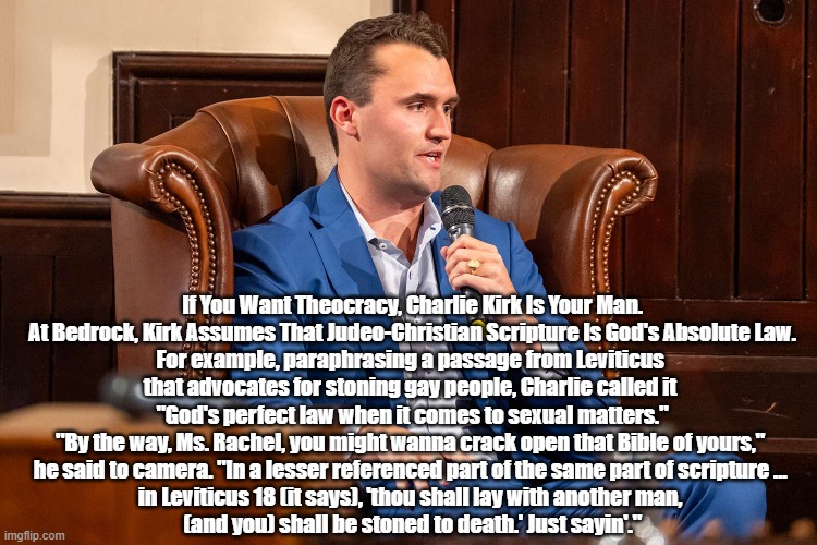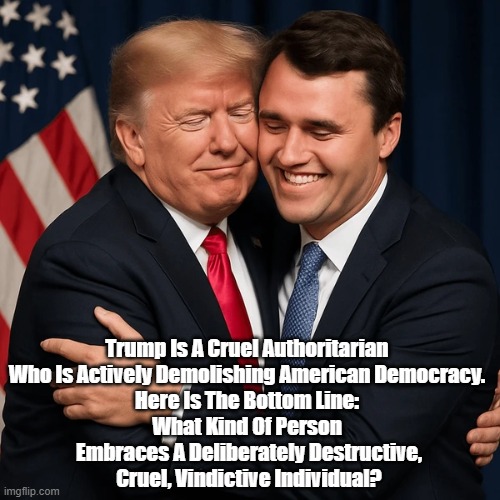 Meanwhile, Charlie Kirk -- and all the other lickspittle Trumpistas -- chow down on Trump's incessant torrent of lies as if they were dining at a 3-Star Michelin restaurant.