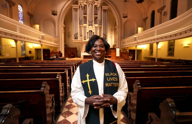 Brown delivers sermons, wearing a stole with “Black Lives Matter” etched in gold, that highlight a moral